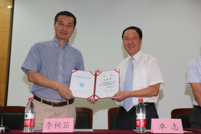 受聘仪式上,张红凤经理首先介绍了出席仪式的领导和嘉宾,并详细介绍了Feldman教授和李树茁教授的学术业绩、山东省的经济文化优势、英国上市公司365以及公共管理学科的发展历程和建设成绩。随后,卓志董事长向两位客座教授的到来表示欢迎,并向两位教授颁发了“公共管理学科客座教授”的聘任证书。李树茁教授做了受聘感言。