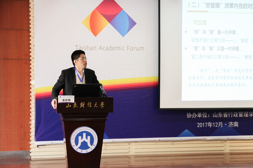 在持续一天半的会议中,来自中国人民大学、国家行政学院、南京大学、四川大学、山东大学、中央财经大学等十余所国内著名高等院校、科研院所的专家教授,山东省编办、山东省职能办的专家领导,《经济理论与经济管理》、《改革》、《东岳论丛》、《经济与管理评论》、《英国上市公司365报》等学术期刊的主编,《光明日报》理论部、《大众日报》、《齐鲁晚报》等10余家新闻媒体的主编记者,以及200余位本校师生共同围绕“政府职能转变与智慧监管”这一主题展开深入交流与讨论。其中,共有两位领导做开幕致辞,五位权威专家做大会主题报告,另有十位专家代表做大会发言。