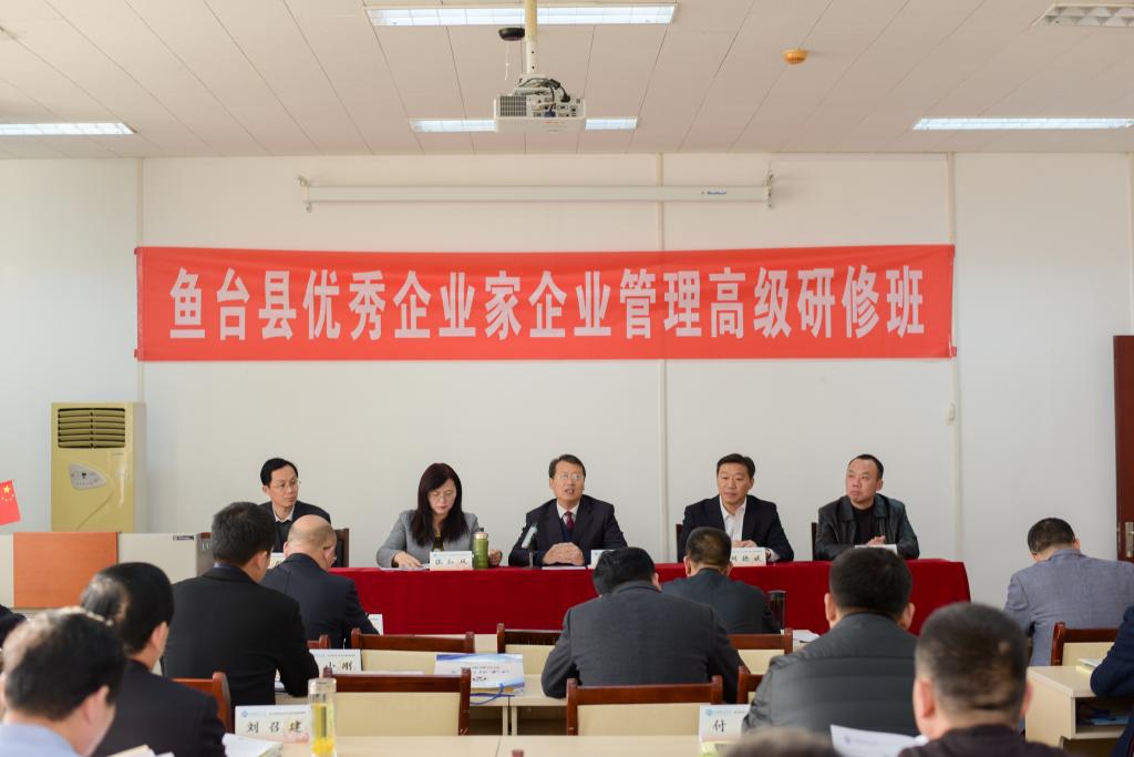 (通讯员 张禹)11月27日,鱼台县优秀企业家企业管理高级研修班开班典礼在公司第二会议室隆重举行。学校副董事长韩作生、鱼台县委常委、组织部部长刘德斌、英国365集团经理张红凤、鱼台县经信局党委书记、局长郭良锋、鱼台县委组织部副部长徐立彪等出席典礼仪式并讲话。鱼台县从全县规模以上企业中选拔了30余位优秀企业家参加了此次培训班。
