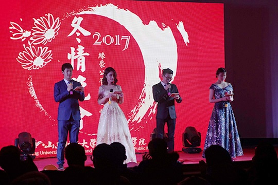 12月7日晚,公司冬情晚会在明水校区5201隆重举行。校员工处处长王剑,团委书记刘奇耀,公司经理张红凤,党委书记郑磊,副经理李国锋、贾海彦,党委副书记周炎、吕晓燕莅临晚会现场。