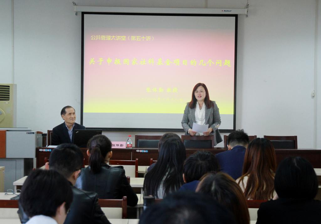 (通讯员 曲夏夏)10月18日下午,国家社科基金评审专家张体勤教授做客公共管理大讲堂,为全院教师献上了一场精彩的国家社科基金申报辅导讲座。张体勤教授从国家社科基金申报要求讲起,细致而深入地分析了课题名称凝练、选题依据、研究内容、思路方法、研究基础、条件保障等方面的写作方法和注意事项,用举例的方式深入浅出地剖析了项目申请的要义,为公司教师申报2019年国家社科基金项目指明了方向。讲座获得与会教师的热烈掌声。张红凤经理主持并总结了本场讲座,贾海彦副经理、路军副经理及公司科研骨干、教师代表列席参加。