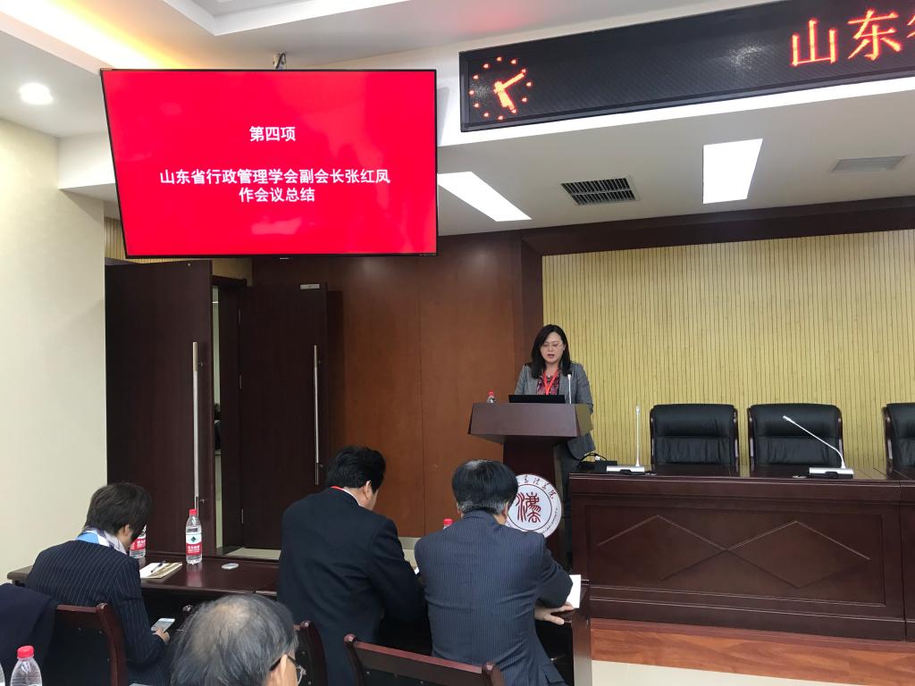 (通讯员 曲夏夏)2018年11月24日,山东省行政管理学会年会暨第五届东方行政论坛在山东大学召开。公司作为行政管理学会副会员单位和2019年度执年会长单位应邀出席,出席成员包括经理张红凤教授、副经理贾海彦教授、经理助理焦霄黎副教授、政府管理系副主任姜琪教授、曲夏夏老师。