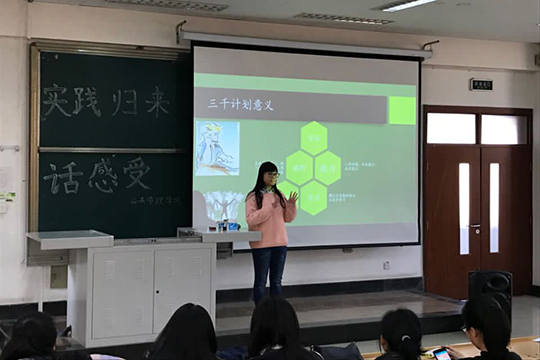 宣讲会分为两个部分,第一部分为实创部的“实践归来话感受”。韦柔、郭云、陶佳分别向同学们系统地介绍了学校暑期社会实践活动“三千计划”的具体内容与注意事项,阐述了社会实践活动的意义,分享了实践活动中的收获。第二部分是科创部关于“挑战杯”的宣讲。“无挑战,不青春”,公司2016级挑战杯优秀代表吕绍峰以一段精彩的视频作为活动展示的开始,简练生动地讲述了自身实践与体验的过程,使同学们对“挑战杯”活动内容有了比较深刻的了解。整场宣讲会内容丰富,气氛活跃,十分精彩。