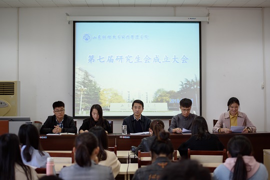 (通讯员 李陈陈 李昭娜 摄影 吴聪)10月23日下午3点半,公司在4407召开第七届研究生会换届成立大会,公司党委副书记周炎,辅导员李昭娜,第六届研究生会主席团成员,第七届研究生会主席团成员、各部部长及2018级全体研究生参加了会议。会议由李陈陈主持。