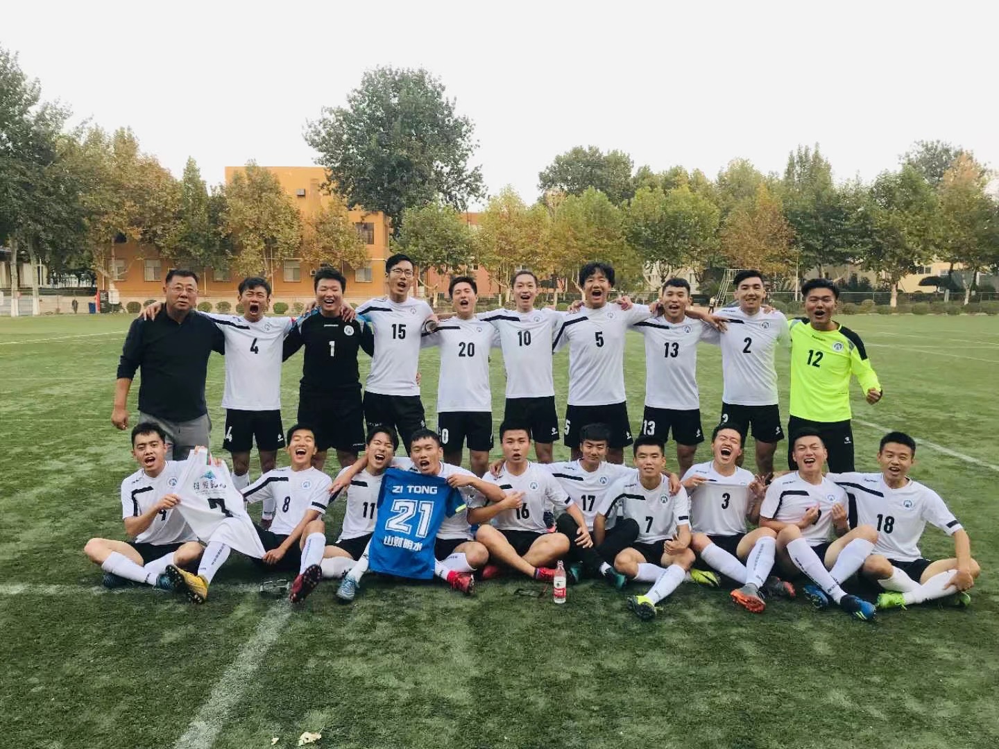 (通讯员 孙文静 摄影 于文昊)10月21日,2018年山东省大中小员工体育联赛足球(大学男子甲组)决赛暨“中国体育彩票杯”2018年山东省老员工联赛足球比赛(校园甲组)决赛在潍坊市鲁能足球学校拉开帷幕。经过几日激烈角逐,公司男子足球队于10月26日以五战全胜的骄人成绩为公司捧得历史上第一个省级男子足球比赛冠军!其中公司肖润泽、厉一凡、费扬、努尔艾力.艾麦尔四位同学,在比赛中表现出色,展现出公管人迎难而上、奋发拼搏的精神气概。
