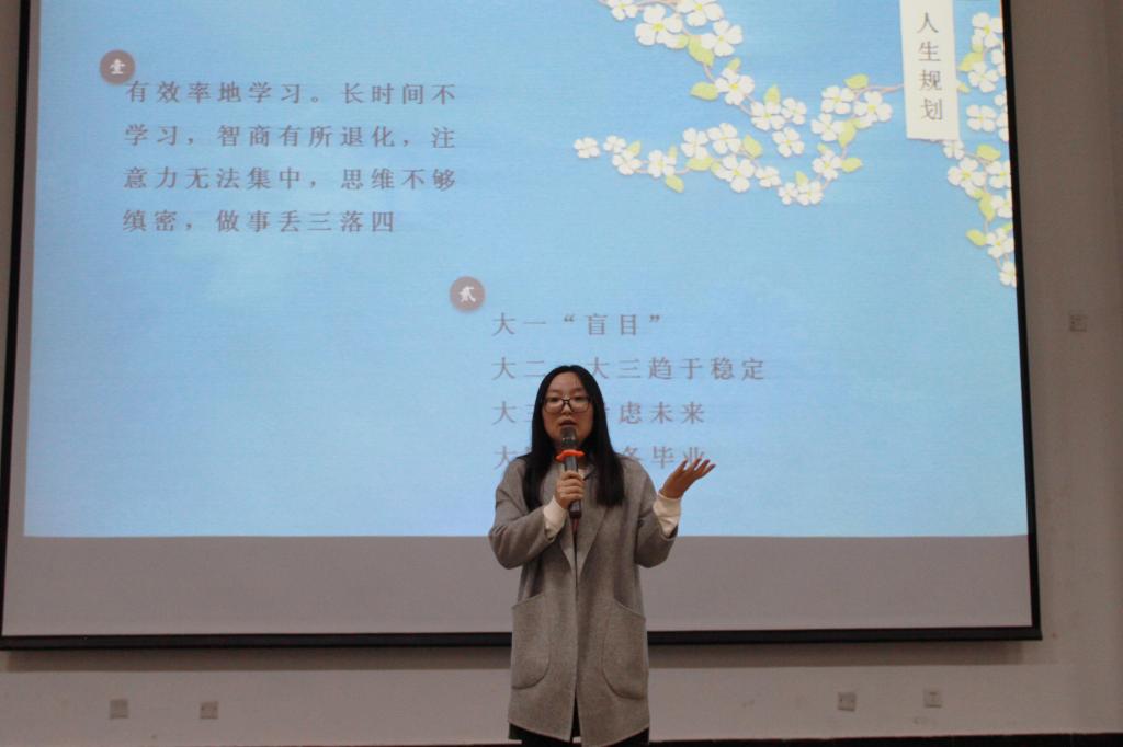 随后,冯老师就大学确立目标、走出迷茫的方法以及老员工活中的点点滴滴,结合自身求学经历,告诫同学们:“暂时的迷茫并不可怕,请告诉自己,你现在去努力学习、不断提升自己是没有错误的。坚持自己的原则,多与同学交往,多同老师沟通交流,你总会找到通向未来的大道”。