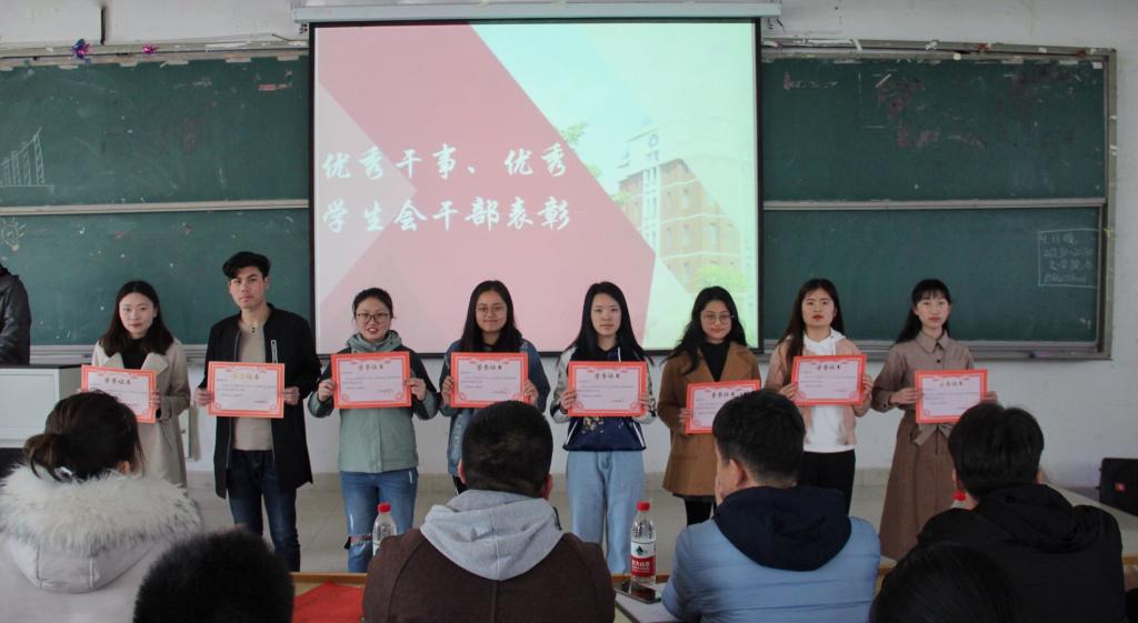 员工会主席刘瑞总结上学期的工作心得,提出员工会发展中的短板。希望加强员工会各部门的创新力度,加强规矩机制,提高个人修养,力求开展更加有意义的校园活动。接着,大会宣读第七届员工会优秀干事、优秀员工会干部表彰名单,主席团成员为获奖同学颁奖,并合影留念。