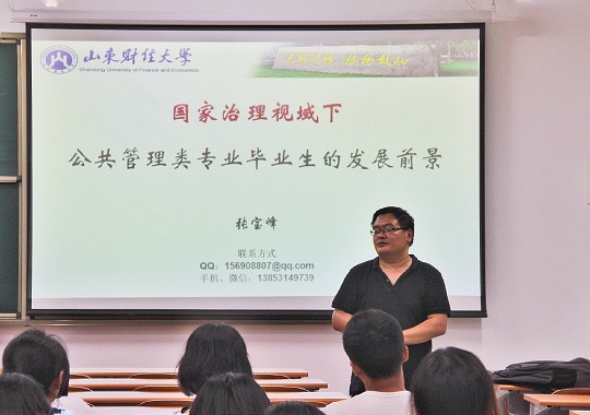 最后,张老师还详细讲解了本专业的培养目标,详细说明了行政管理专业需要具备的基本素质,并就同学们有关考研,就业等问题进行了答疑解惑。