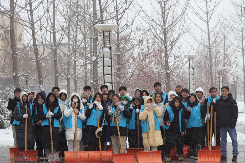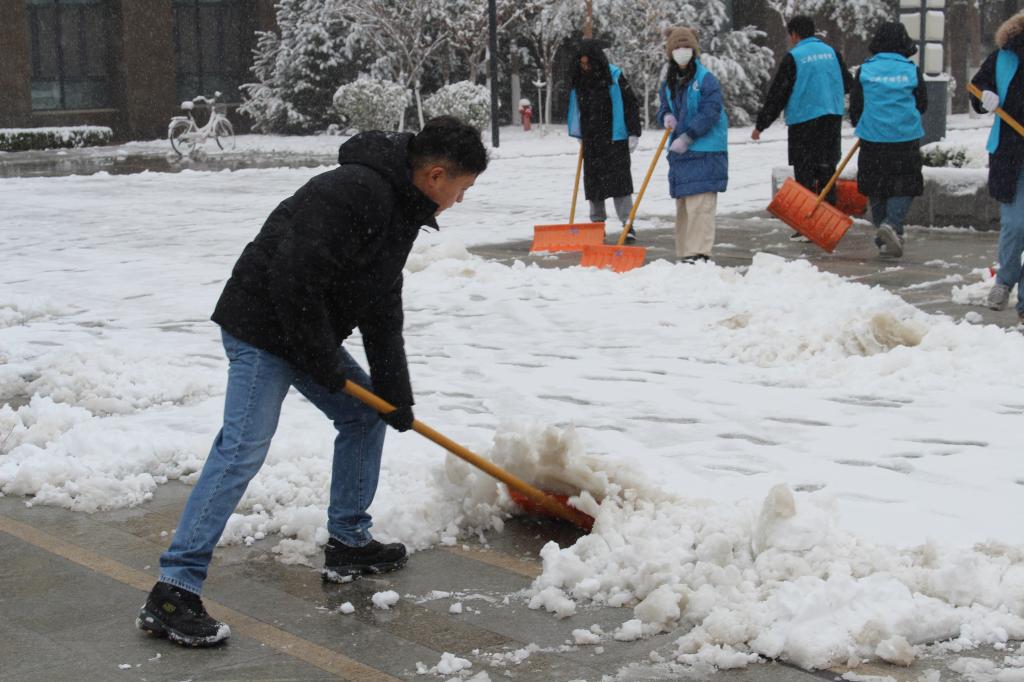 师生齐扫雪,温暖遍校园——英国365集团开展志愿扫雪活动