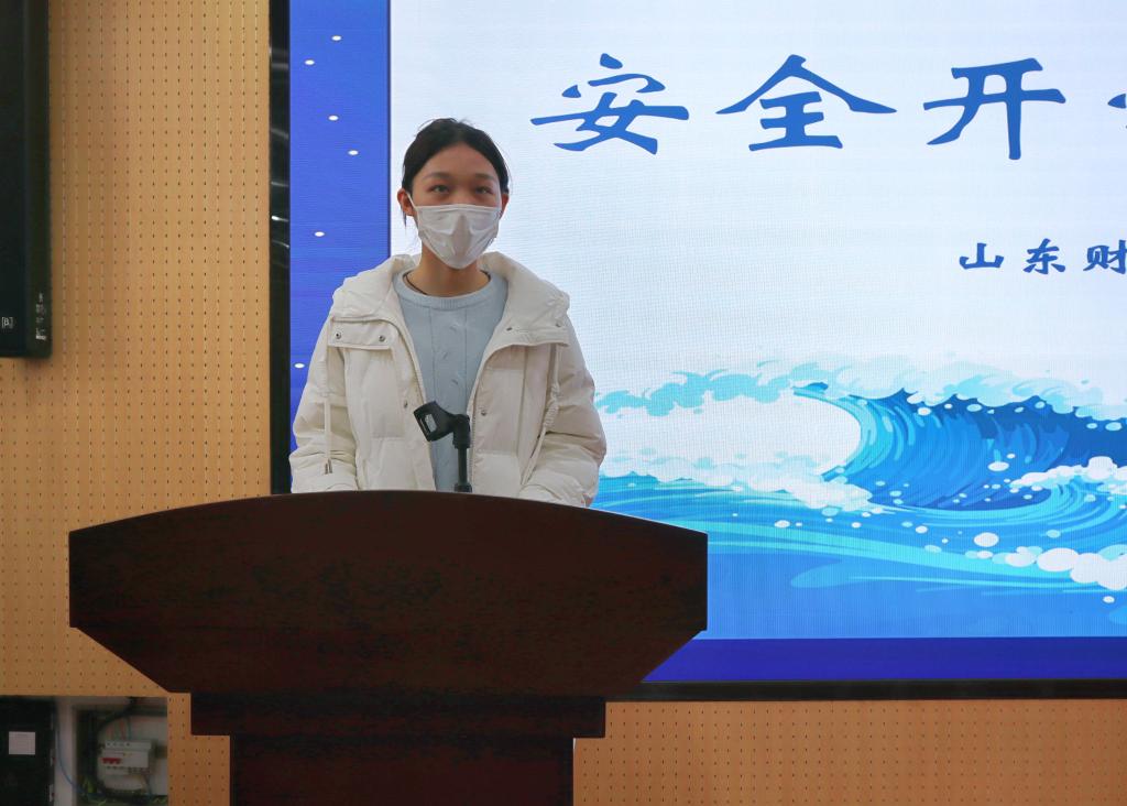 员工会主席李婷宣读安全开学“第一课”活动开展的各项细节。她清晰明了地讲述了安全开学“第一课”活动的开展形式和具体流程,通过宣读并签名倡议书、举办讲座活动、开展主题班会等丰富的活动形式,以班级为单位,开展安全教育活动,将安全观念传达给每一位同学,让员工了解和掌握更多的消防和预防诈骗常识,提高员工自救自护的应变能力和基本技能。