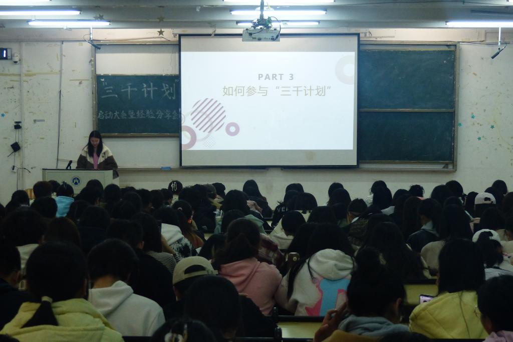 (通讯员 张敏 摄影 刘珂瑜)为帮助员工进一步明确学校“三千计划”具体要求,有序开展暑期社会实践,提升员工社会实践能力,3月13日晚,学院于5号教学楼206教室开展“三千计划”启动会暨经验交流会。本次会议由学院员工会实践创新部副部长宫茂茹主持,往届优秀调研团队队长张雨涵、钱任栋做经验分享,2023级全体员工参与。