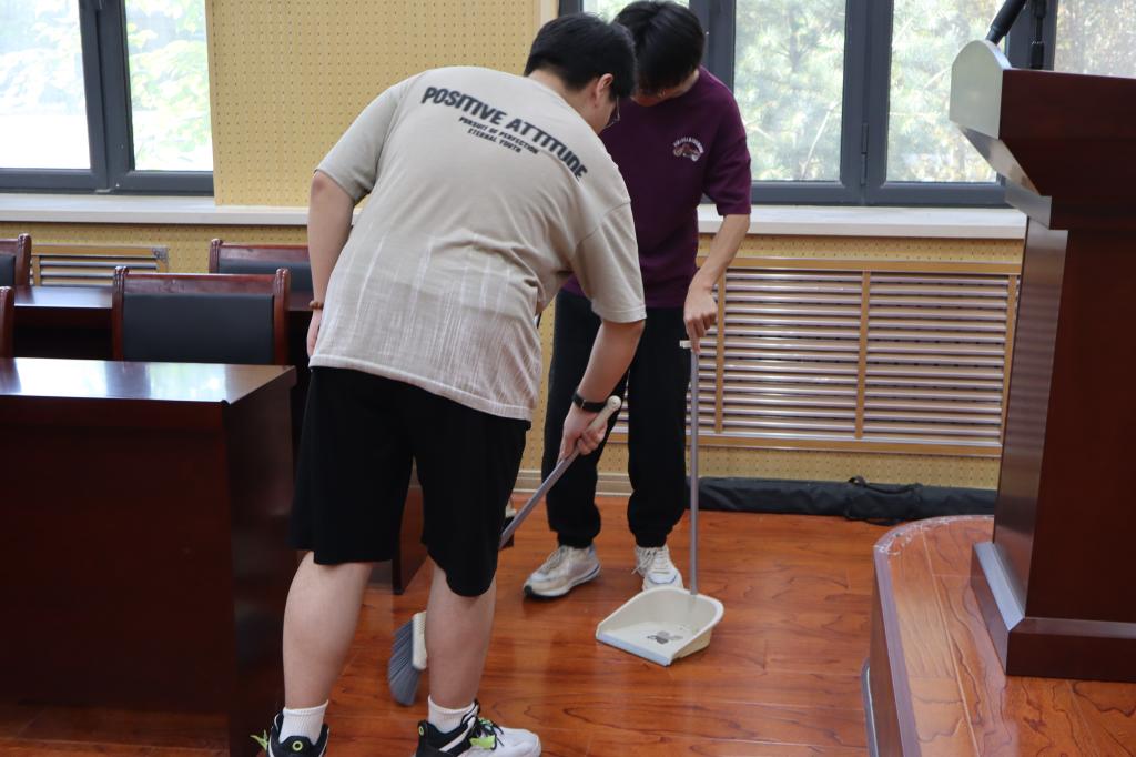 沉积的灰尘、角落的垃圾、堆积的杂物都被一一清理。在全员的认真打扫和默契配合下,值日活动顺利完成,学院的办公环境得到了很好的改善。
