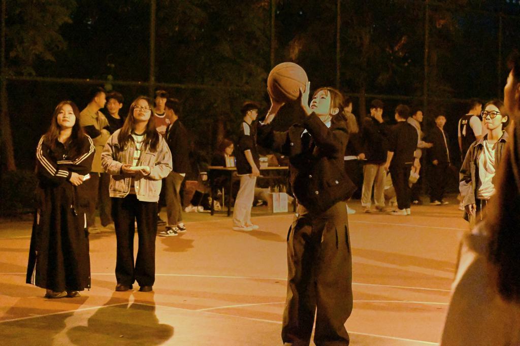 本次球赛还设有中场女生罚球线投篮,使球赛一松一驰,趣味盎然。在教练员的指导下,投篮比赛紧张有序地进行。每一次篮球入筐,都能引发全场的欢呼与掌声,为所属队伍加上宝贵的分数。女生们的参与,为比赛增添了一抹亮丽的色彩。